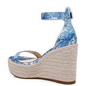 New Without Tag L'Agence Avice Leather Espadrille Platform Blue/ Ivory Wedge Sandals
