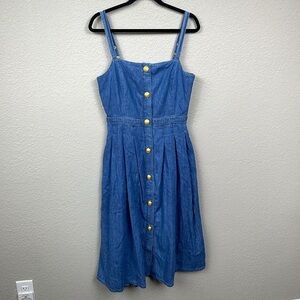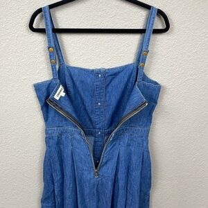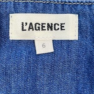 New L’Agence Denim Pleated Esmeralda Dress Button Front Blue Jean Stokes Sz 6