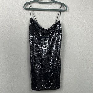 New L’Agence Nyla Sequin Embellished Charcoal Gray Black Mini Dress Cowl Sz 2