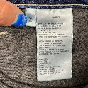 New L’Agence Ruth High Rise Straight Jeans in Magnolia Black Coated 2 Tone Sz 23
