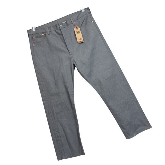 501's Original Shrink-to-Fit Non-Stretch Cotton Denim. Regular fit, straight leg, 5-pocket, button fly. New With Tags. Levi's 00501-1403 Silver Rigid Grey, Mexico. Tag Size 44x32. Measures 44x33. NWT.