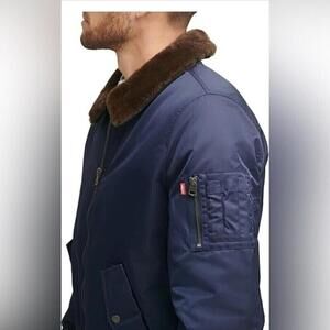 New LEVI'S Men's Large Flight Bomber Jacket Faux Fur Removable Collar Navy M