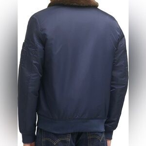 New LEVI'S Men's Large Flight Bomber Jacket Faux Fur Removable Collar Navy XL