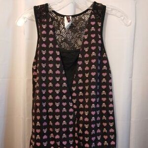New LIQUID PARTY Halloween Skulls Hearts Gothic Punk Tunic T-shirt Tank Top Smal