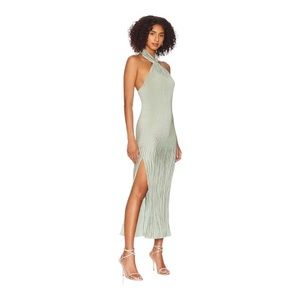 New L’Idee Halter Midi Dress Soirée Pleated in Sage Size 12