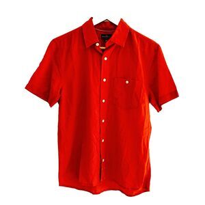 New L.L. Bean Signature Button Up Top Size Small Slim Fit Orange Linen Blend NWT