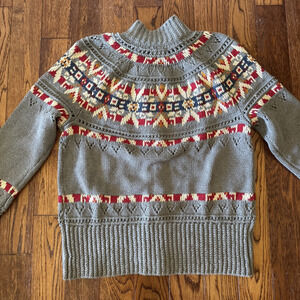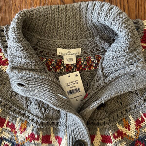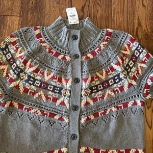 New LL Bean Signature Fisherman Sweater Short Cardigan Fair Isle Womens Large