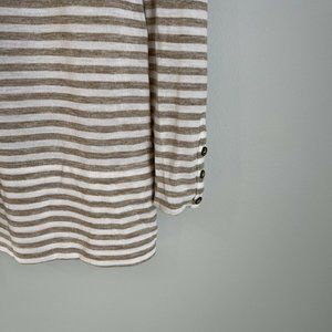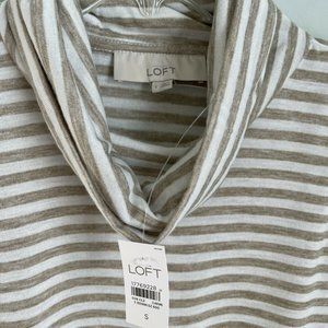 New LOFT Beige White Striped Long Sleeve Cowl Neck Tunic