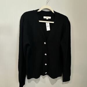 New LOFT Black Cardigan w/ Faux Crystal Buttons Women's Large NWT