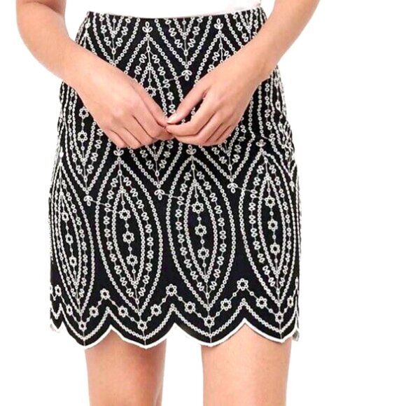 New LOFT Cotton Black White Embroidered Scalloped Shift Skirt Size 10