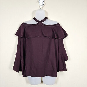 New LOFT Halter Blouse Size Medium Ruffle Off Shoulder Top Bell Sleeve Formal