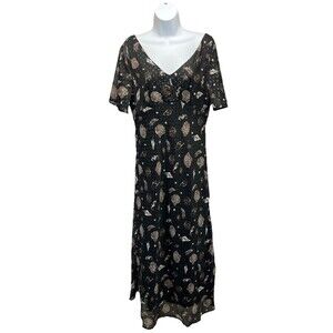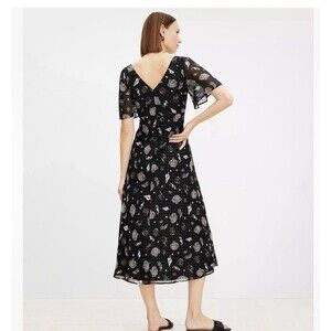 New LOFT Midi Dress Black Seashell Shell Print Metallic Clip Dot Flutter 8
