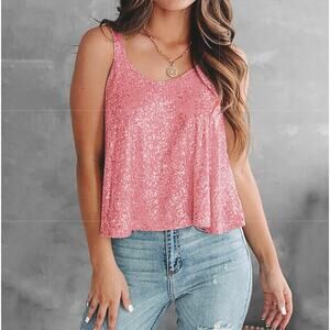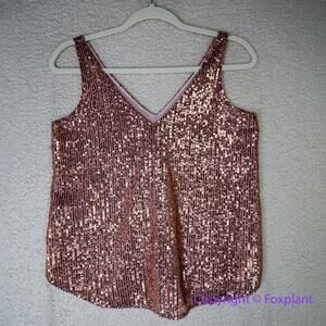 for holiday parties. Perfectly flattering and perfectly minimalist, the silhouette of this shell is a dream canvas for radiant, high-shine sequins. V-neck and back. Sleeveless. Shirttail hem. Lined. 100% Polyester. Imported.