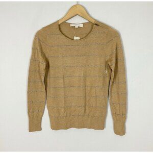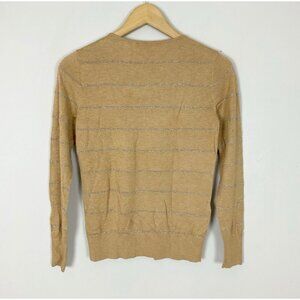 New LOFT Striped Knit Sweater Wool Blend Brown & Silver Size Small Petite Women'