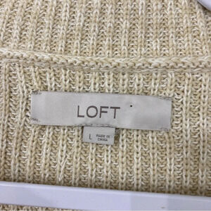 New LOFT Tan White Striped Lace Up Chunky Cozy Sweater size Large