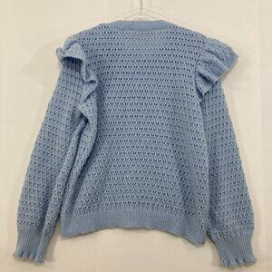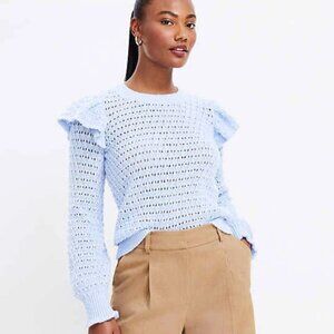 New LOFT size XL Light Blue Open Knit Ruffle Detail Elegant Preppy Sweater