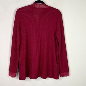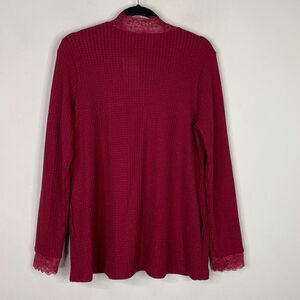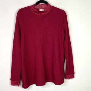 New LOGO Lori Goldstein Metallic Waffle Knit Mock Neck Lace Top Size Medium