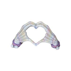 New LRG Pink Purple Skeleton Heart Hands Sculpture Love Halloween Holiday Decor