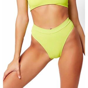 New L*SPACE Frenchi Bottom Bitsy Cut High Waist Bikini Ribbed Acid Green Large