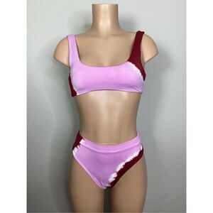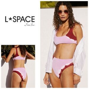 NEW. L*SPACE PINK AND WINE TIE DYE HIGH WAISTED BIKINI SET. Delighting in the laidback lifestyle of the sun-kissed West Coast, L Space's Monica Wise creates fuss-free pieces made to be worn on the sand and in the sea. Inspired by four "Ls" - Love, Laughter, Lounging, and Living - each form-flattering staple is made for mixing and matching.