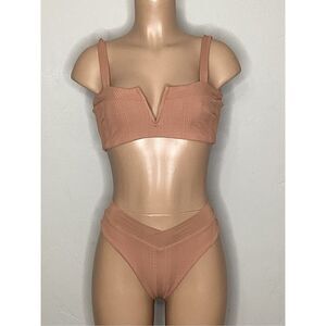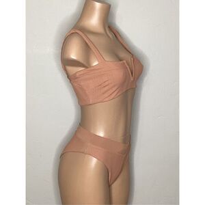 New. L*SPACE tan ribbed bikini. DD-top/M-bottom. Retails $198