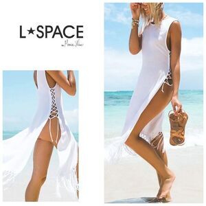 New. L*SPACE white fringe lace up cover up. Small. Retails$99