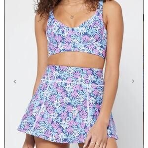New L*Space Oopsie Daisy‎ Tryout Sports Bra Large Floral Underwire Purple Blue