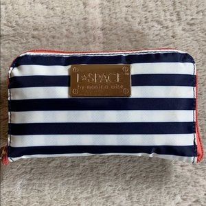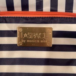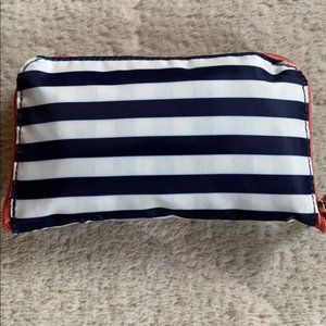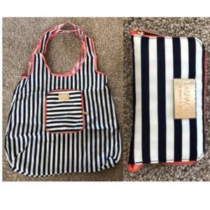 Brand new, never worn, no tags. L*Space nylon packable foldaway collapsible stripe travel market beach tote bag. Converts into a small 6.5" x 3.5" pouch when not in use. Easily folds up into its on travel case. Water resistant material. Great as a farmer's market grocery travel beach tote. Very lightweight. G2.