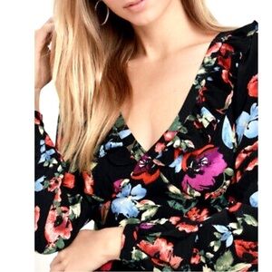 New LULU’S Beloved Blooms Black Floral Print Long Sleeve Midi Dress Size S