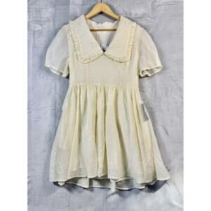 New! LUSH Collared Puff Sleeve Dress Cream Babydoll Size Medium