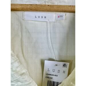 The new LUSH collared puff sleeve dress in cream color is a stylish and feminine choice for women in size medium. The babydoll silhouette with puff sleeves adds a touch of romantic flair, making it perfect for various occasions. The ivory color gives it a classic and versatile appeal, ideal for pairing with different accessories to achieve a chic look. Made by the popular brand Lush, this dress is sure to add a lovely addition to any woman's wardrobe.