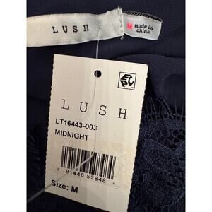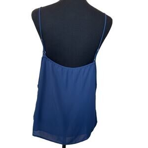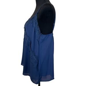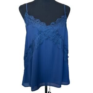 New ~ LUSH ~ Midnight Blue Lace Trim V-neck Chiffon Camisole Size M FALL