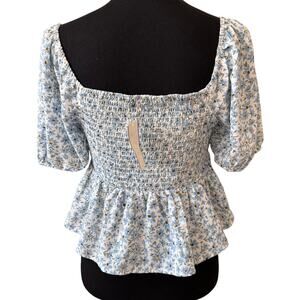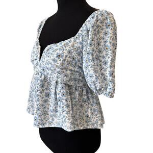 New LUSH NORDSTROM Women's White-Blue Floral Blouse Top Size M