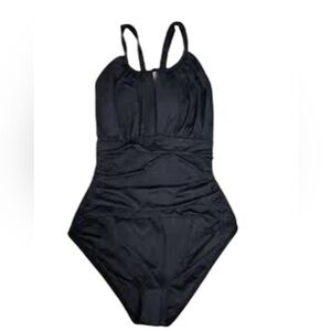New! La Bianca Island Goddess High Neck Keyhole One Piece - Black
