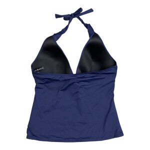 New La Blanca Island Goddess Halter Tankini Swim Top in Navy Size 14