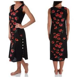 New La Cera 2771X Sleeveless V Neck Floral Lounge Dress Black Red Midi Size 1X