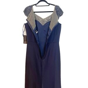 New La Femme Navy Blue Beaded Column Gown Women's Size 16
