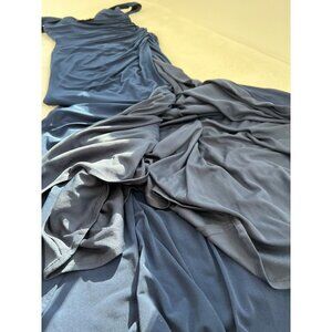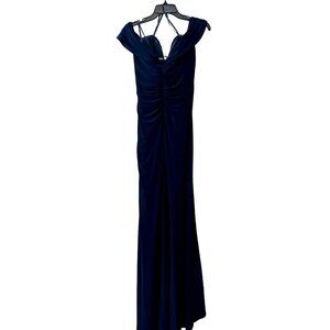 New La Femme Size 10 Off the Shoulder Ruched Floor Length Gown Navy