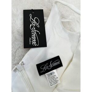New La Femme Size 2 One-Shoulder Jersey Gown white 28176 *Stain*