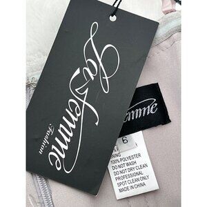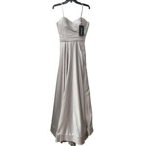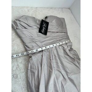 New La Femme Size 6 Strapless Slit Satin Ballgown w/Pockets Silver 28608 Prom