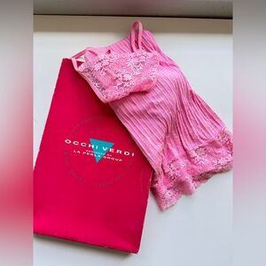 Indulge in the luxurious feel of this chemise, crafted in a vibrant pink hue.