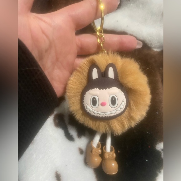 Adorable bunny keychain with a fluffy brown pom-pom. Perfect for adding charm to your keys or bag.