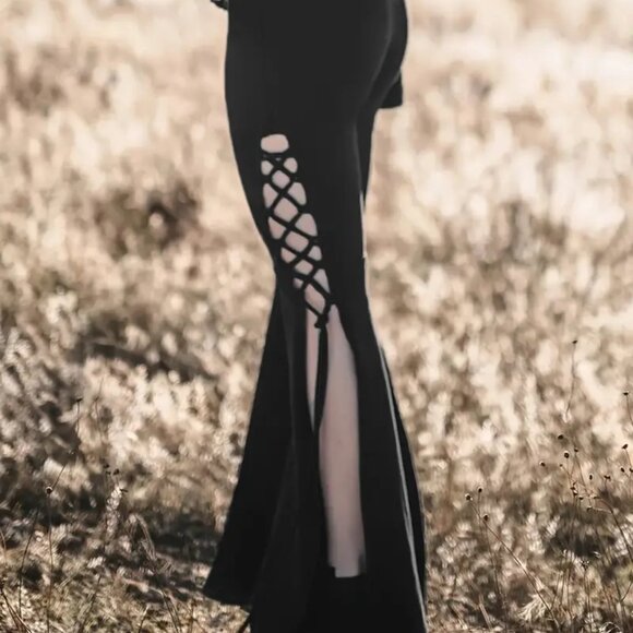 New Lace Up Split Hem Flare Leg Pants, Stylish Forbidden Pants XL 1X