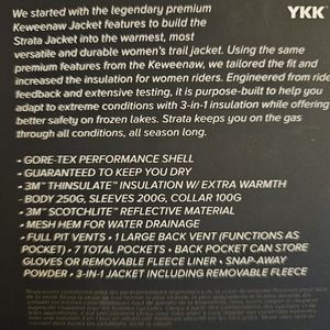 New Ladies Klim black & winterment Strata Jacket, 3-in-1 With removable flece, size, large, Gore Tex performance shell, guaranteed to keep you dry, 3M thinsulate insulation with extra warmth, 3M scotchlite reflective material, mesh hem for water drainage, full pit vents, large back vent that can be used as a pocket, 7 total pockets, discounted overstock item.