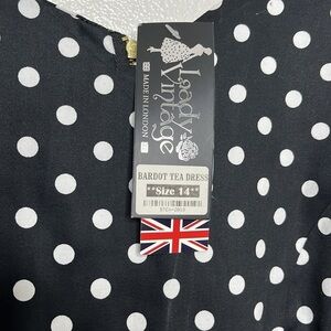 New Lady Vintage Bardot Black White Polka Dot Tea Dress Women Size 14