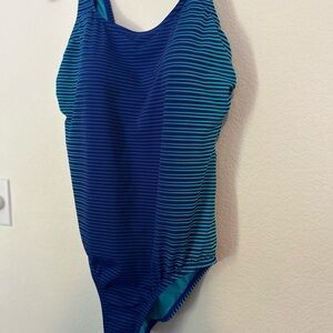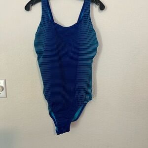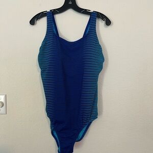 New Lands End Chlorine Resistant High Leg Tugless Sporty One Piece Swimsuit 16