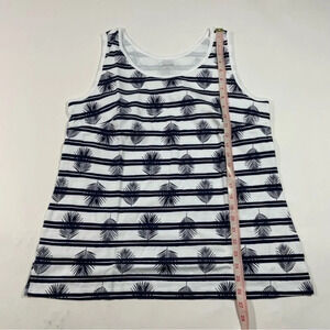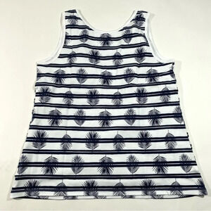 New Lands End Interlock Cotton Tank Top Size 1X Blue Palm Stripe