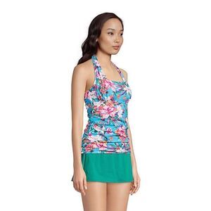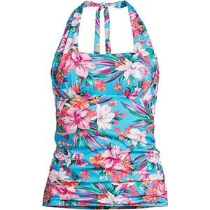 New Land’s End Plus size soft cup adjustable halter tankini Turquoise Lily Palm Print 26W