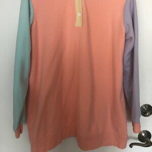 PEACH/YELLOW/PURPLE/AQUA BUTTON PULLOVER LONG HODDIE.31"L