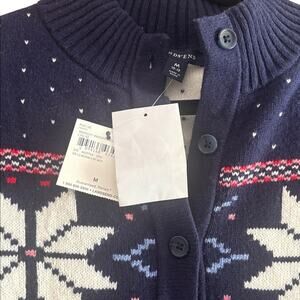 New Lands’ End Women’s Navy Blue Fair Isle Button Up Cardigan M Wool Blend Snow
